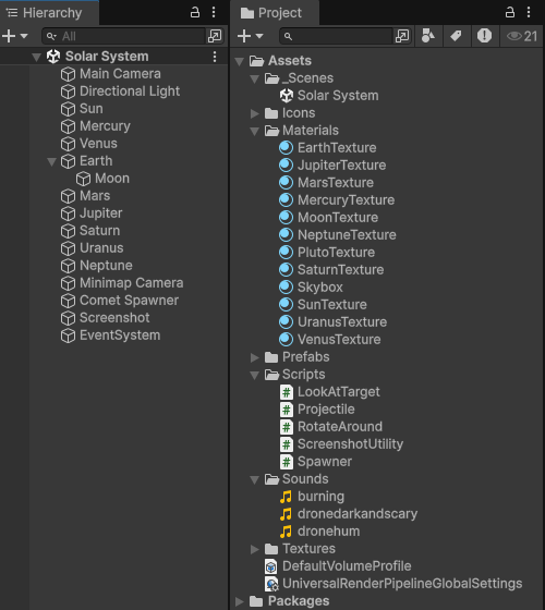 This is my solar system project from the "Game Design and Development" Coursera course. In the project I included: